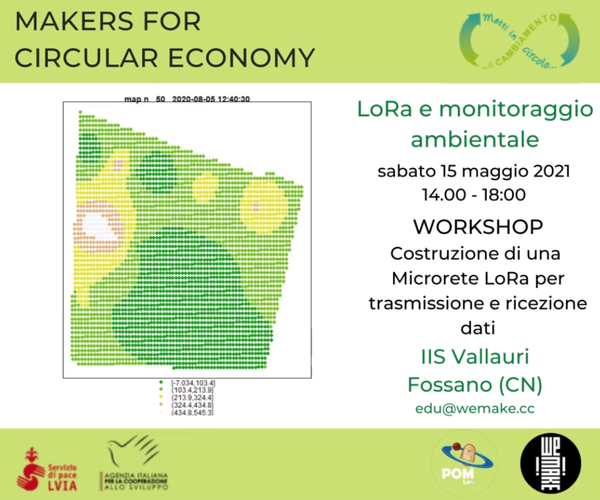 Come trasmettere dati in assenza di internet? Come riuscire a monitorare e a trasmettere dati? WeMake e Pomlab (FabLab dell’Istituto di Istruzione Superiore Giancarlo Vallauri di Fossano) organizzano un workshop in presenza sulle Minireti LoRa. Il percorso fornirà tutte le nozioni teoriche e pratiche necessarie a costruire una propria rete, fatta da sensori che trasmettono a chilometri di distanza e da un ricevitore in grado di farti leggere i dati localmente o di inviarli su internet ad un server.