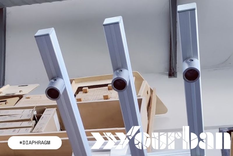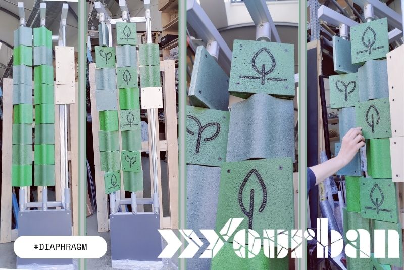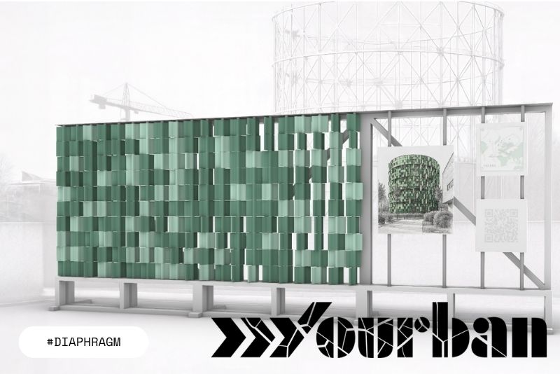 Diaphragm è un sistema modulare di pareti temporanee che trasforma le barriere urbane in interfacce leggibili. Nasce per rendere visibili processi che normalmente restano nascosti, come la rigenerazione ambientale del Bosco La Goccia.