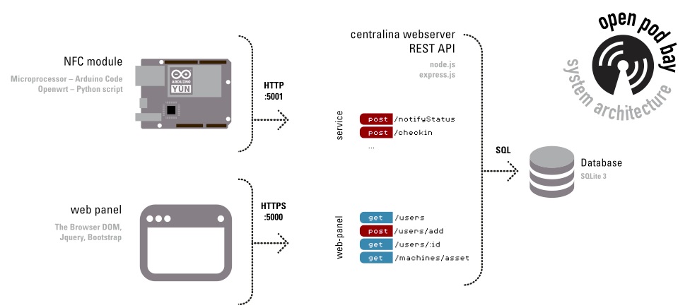 Il progetto permette a Hackerspace, Makerspace e Fablab di gestire gli accessi allo spazio e alle macchine. Consente infatti di registrare membri, dargli accesso allo spazio, prenotare e attivare le macchine, tenere i log degli accessi in real-tim e online. I reader sono di due tipi: Gateway (stanno sulle porte, aprono serrature elettroniche e sono controllati da tabelle di calendari settimanali) e Asset (stanno sulle macchine – es. controllano l’accesso al login del computer con cui controllare la macchina a taglio laser – e danno accesso alle prenotazioni). I reader sono montati sopra a dei device (Arduino YUN) che comunicano via wireless con un server (chiamato centralina) in una rete separata (un router separato per la centralina e i reader non accessibile al pubblico per motivi di sicurezza).