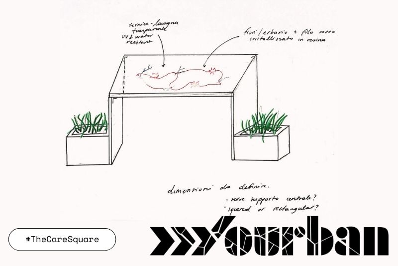 The Care Table è un oggetto di arredo urbano pensato per spazi outdoor che unisce una superficie scrivibile a due vasi integrati per piante. È progettato per invitare le persone a fermarsi, sedersi una di fronte all’altra e attivare momenti semplici ma significativi di interazione: scrivere, disegnare, parlare o prendersi cura delle piante. Il piano del tavolo presenta una decorazione incisa ispirata a un erbario, derivato dalla mia ricerca artistica, che permette un’esperienza tattile e sensoriale legata agli elementi naturali. Scrivere sulla superficie diventa così un gesto sia personale che collettivo, trasformando il tavolo in uno spazio di espressione e memoria condivisa. Il progetto mette insieme natura, relazione e materia, con l’obiettivo di generare piccoli momenti di connessione e attenzione all’interno dello spazio pubblico.